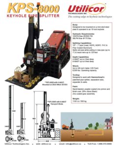 The Utilicor KPS-8000 Keyhole Pipe Splitter is a mini-skid-steer-mounted trenchless solution engineered for efficient pipe splitting and simultaneous pipe replacement in restricted access environments. Designed for utility contractors, municipal crews, and service line specialists, the KPS-8000 enables rapid removal of existing gas and utility lines while pulling in new pipe with minimal excavation.